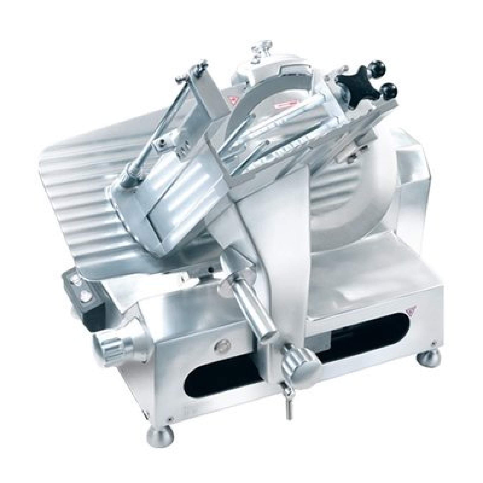 Слайсер оснащений лезом діаметром 300 мм, корпусом з алюмінію та вбудованим заточувальним пристроєм. Забезпечує товщину нарізки від 0,2 до 15 мм.