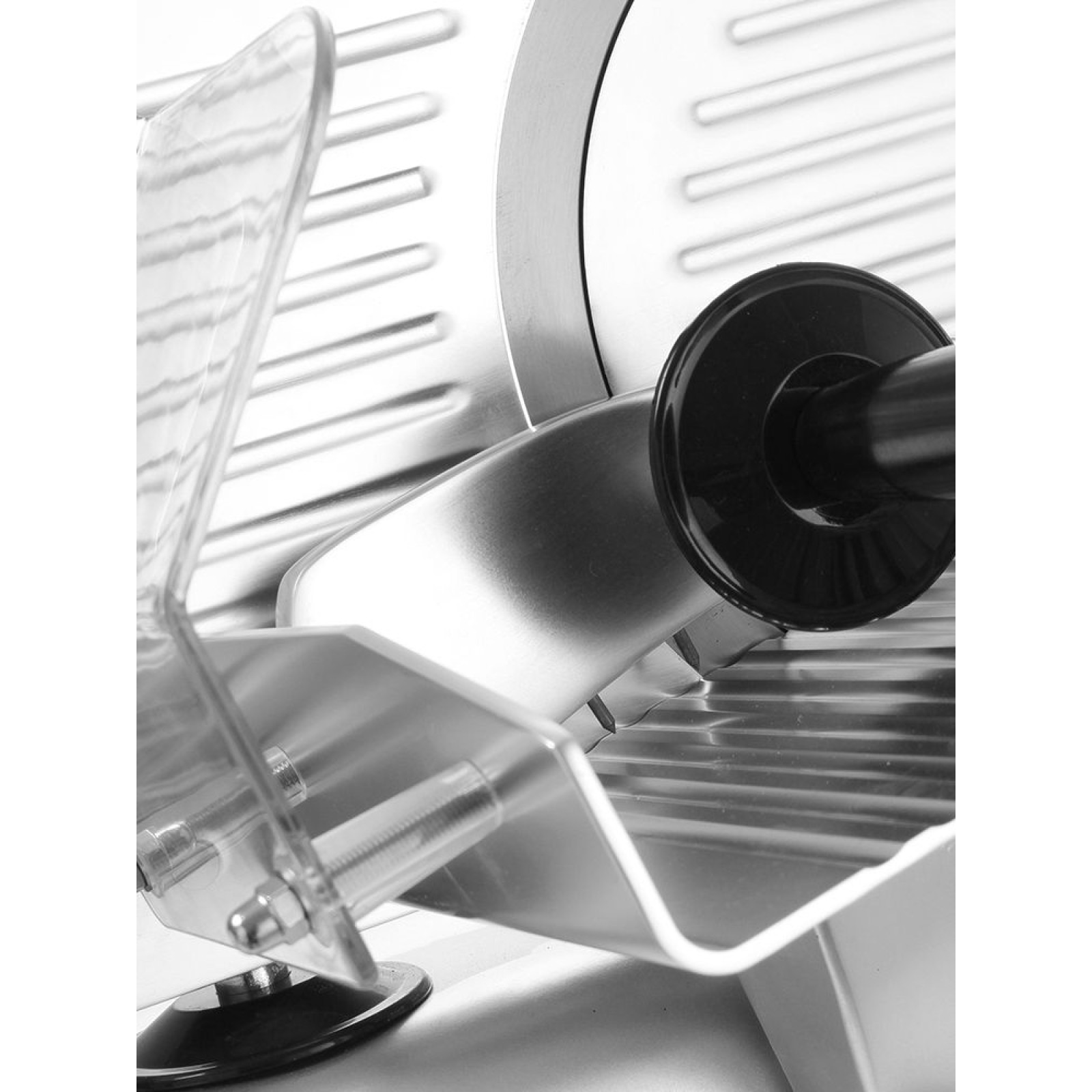 СЛАЙСЕР HENDI PROFI LINE 250 Алюмінієвий корпус Двигун охолоджується повітрям, що забезпечує високу продуктивність Легкий демонтаж частин полегшує чищення слайсера Обмежувач з оргскла для захисту рук, вбудований пристрій для заточування Похила модель із високоякісним ножем Безпечні окремі кнопки для увімкнення/вимкнення Блокування каретки Не призначений для нарізки сиру Діаметр ножа: 250 мм Плавне регулювання товщини скибочки від 0 мм до 12 мм. Максимальний розмір продукту, що нарізається ≈ 180 мм 380x490x(H)380мм 320/230 WV