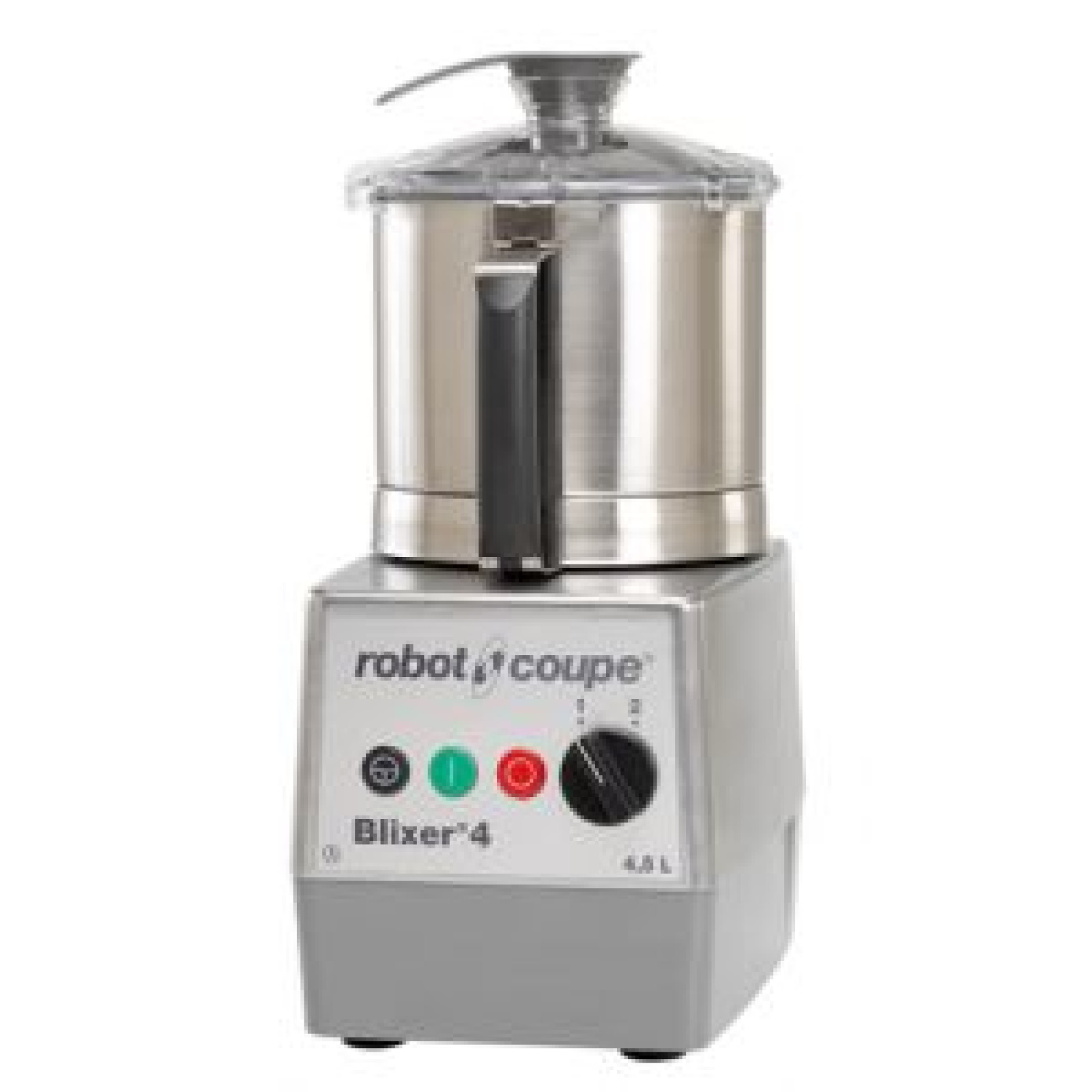 2 швидкості - 1500 та 3000 об/хв. Металевий корпус двигуна, ємність із нержавіючої сталі на 4,5 л. У комплекті ніж з дрібними зубцями та герметична кришка зі скребком.
