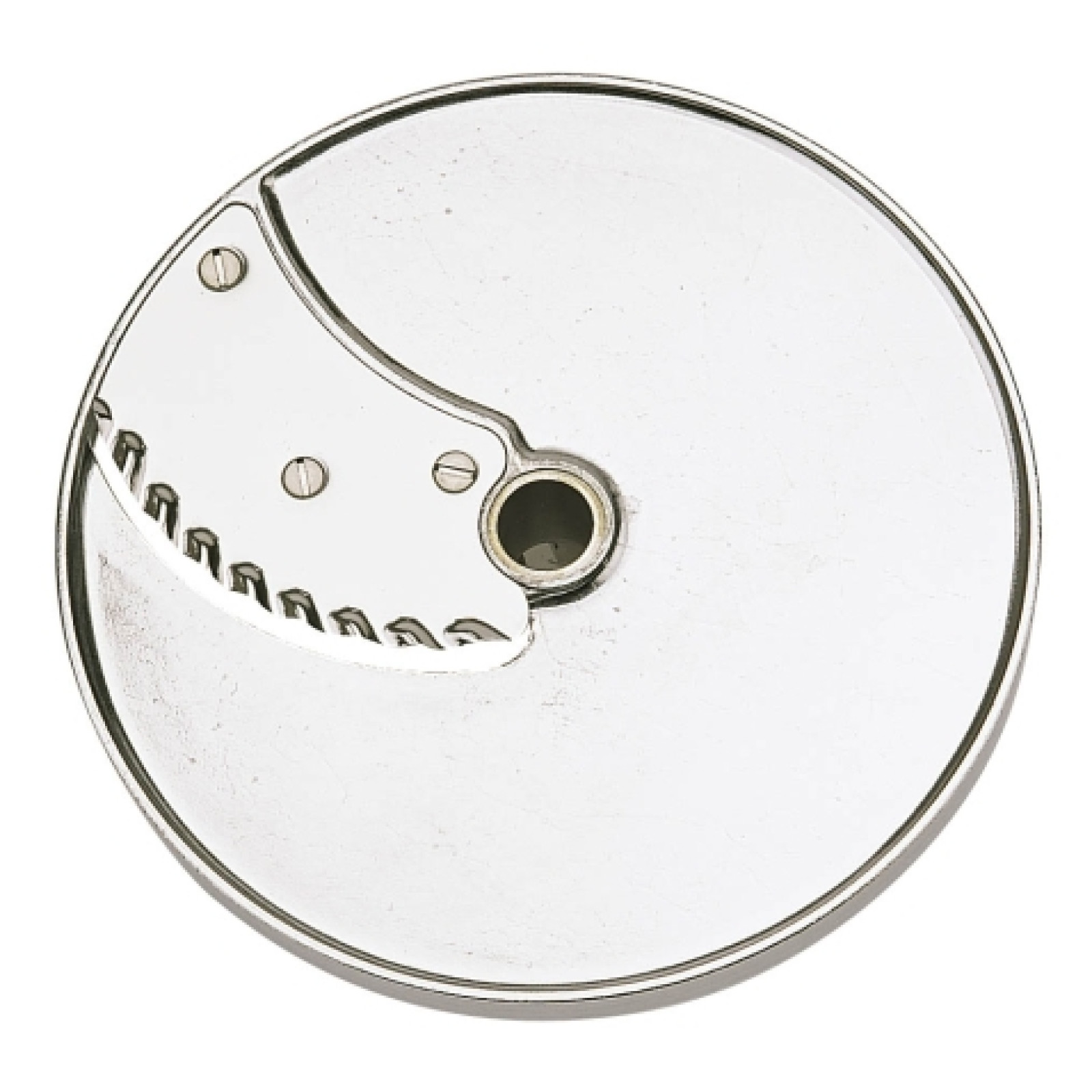Диск для нарізки хвилястими ломтиками 5 мм. Призначений для куттера R502 та овочерізок CL 50, CL 50 Ultra, CL 52, CL 55, CL 60. Виріб виконаний із нержавіючої сталі.