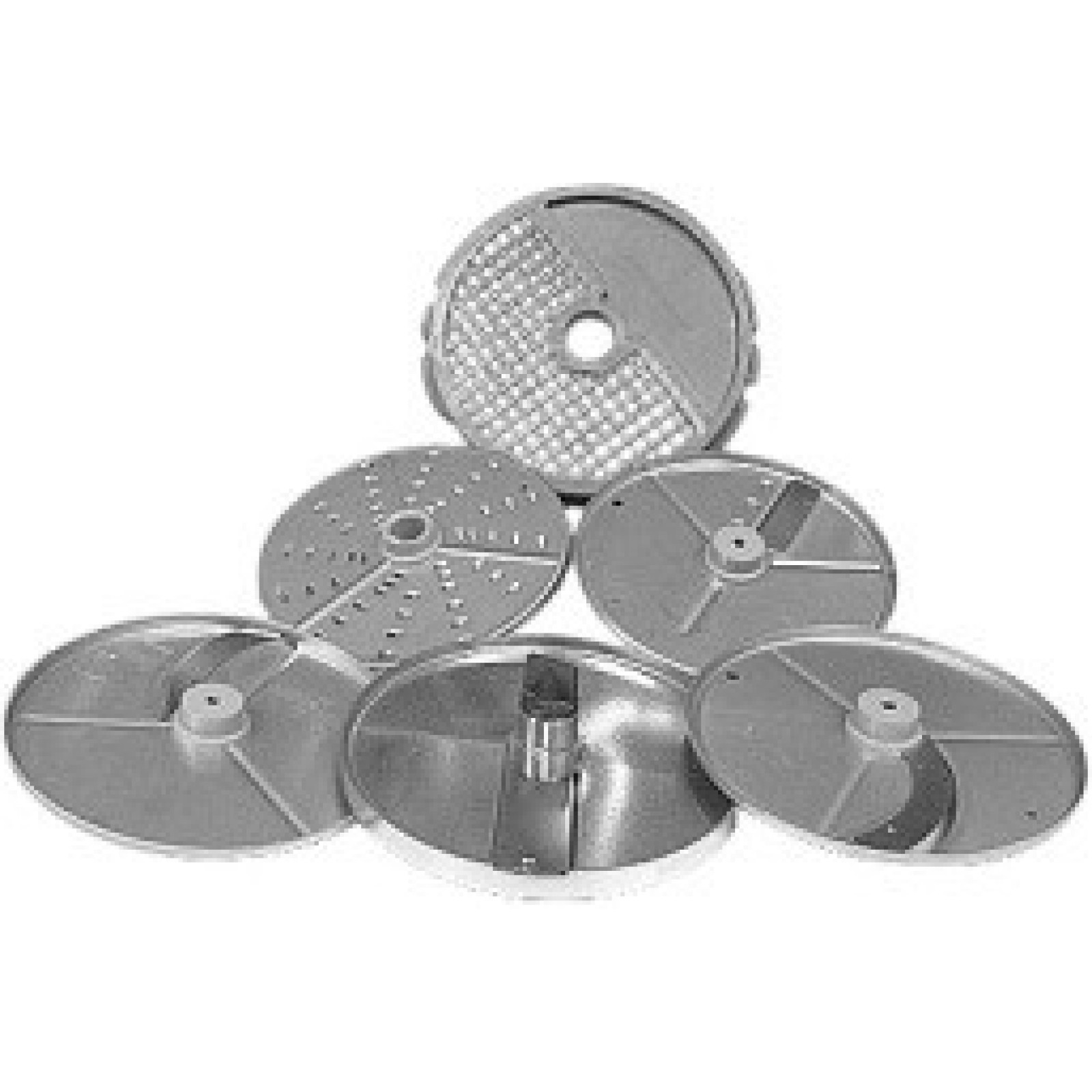 • Комплект з 8 дисків використовується спільно з овочерізками CL50, CL52, CL55, CL60 та кухонними процесорами R502, R652 на підприємствах громадського харчування та торгівлі. Комплектація: диск-слайсер 2 мм; диск-слайсер 5мм; диск-терка 2 мм; диск-соломка 3х3 мм; комплект для картоплі-фрі 10х10 мм; комплект для кубиків 10х10х10 мм (решітка та диск-слайсер).