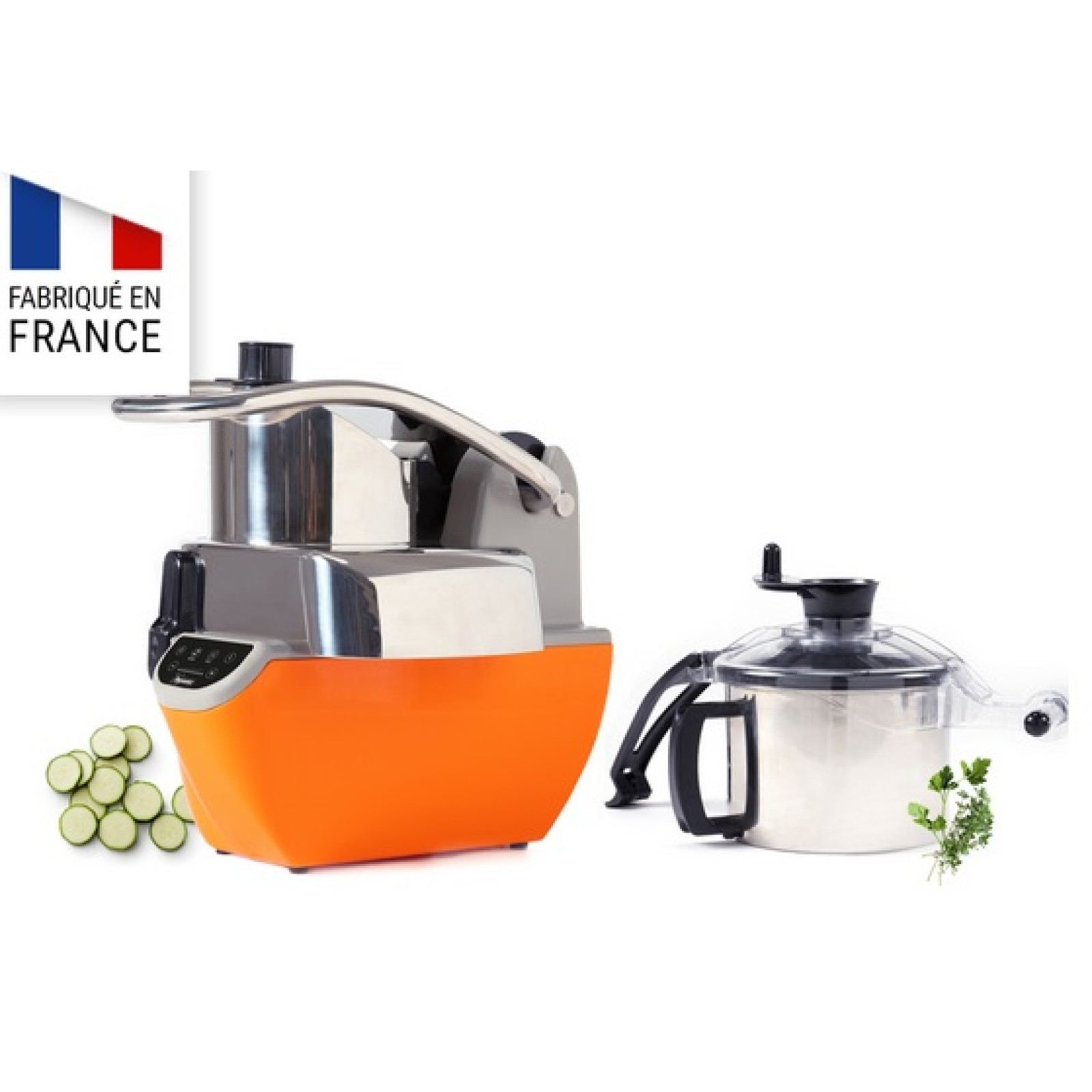 Настільна. Продуктивність куттер - 20-100 порцій, овочерізка до 400 порцій. Об'єм куттера загальний/корисний - 5,4/4,3 л. Корпус та чаша куттера нержавіюча сталь. Швидкість овочерізка 320-720 об/хв, куттер 350-3500 об/хв. Дві вирви - велика площею 217 см2 і діаметром 60,5 мм.