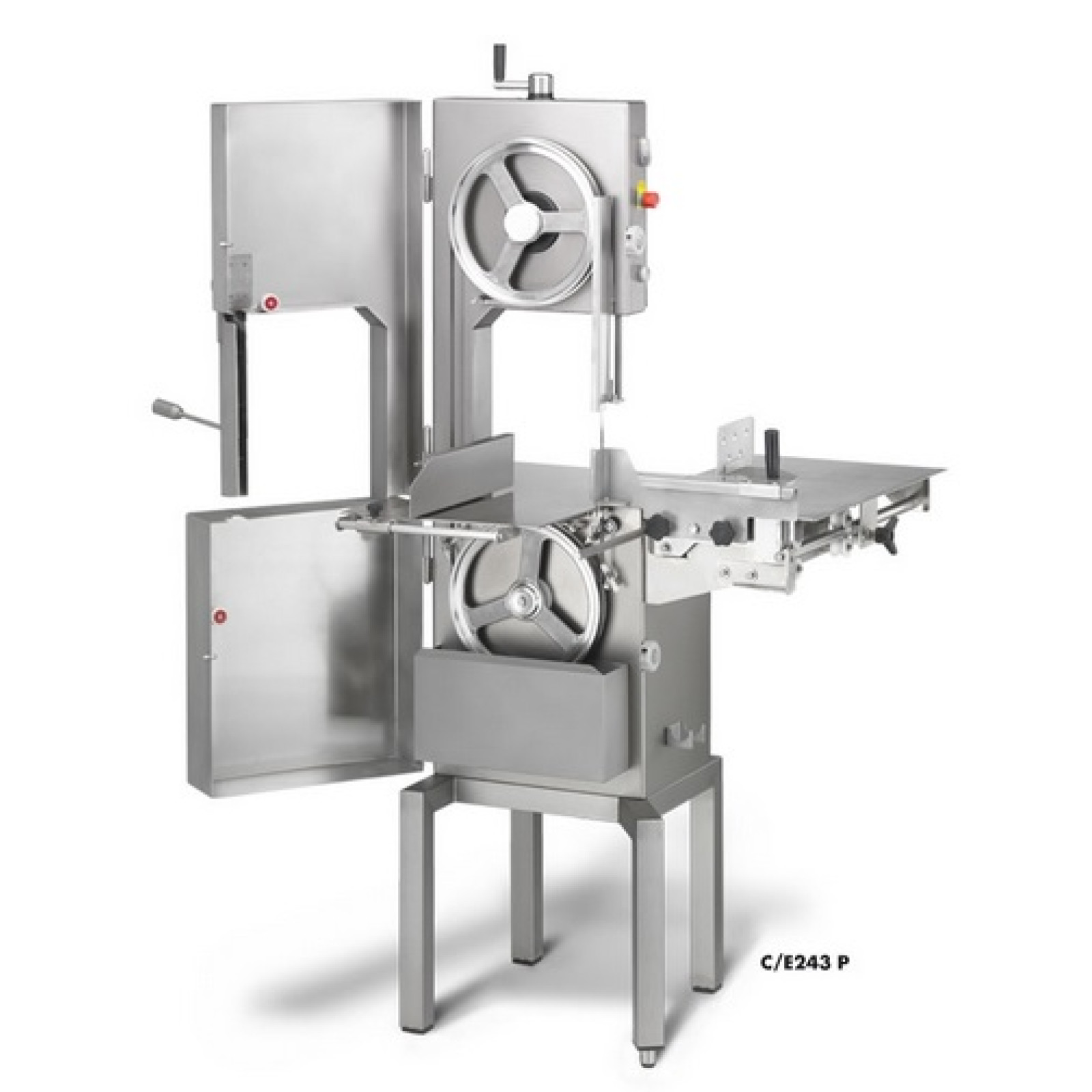 Швидкість пропилу 15 м/с. Полотно 2430х16 мм. Розміри пропилу 288х355 мм. Робочий стіл 830х735 мм. Стійка зліва. Нержавіюча сталь.