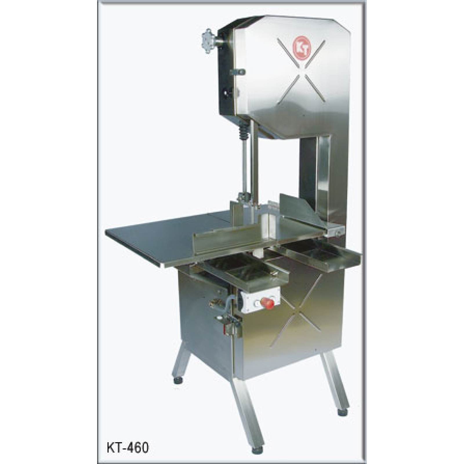 Стрічкова пилка КТ безпечна в експлуатації та розрахована на тривалий термін роботи. Призначена для розпилювання кісток та заморожених м'ясних брикетів на шматочки заданої товщини. Прекрасно працює не тільки з м'ясом, а й з рибою, і з птицею. Робоче місце, корпус, захисний кожух та кожух полотна виготовлені з нержавіючої сталі. Рухомий стіл. Розміри полотна 3135×20 мм. Потужність 1,8 кВт. Дві швидкості: 1 швидкість 31 м/с, 2 швидкість 16 м/с, 380В. Потужний двигун, низький рівень шуму при роботі та рівномірний хід ріжучого полотна гарантують відмінну якість роботи.