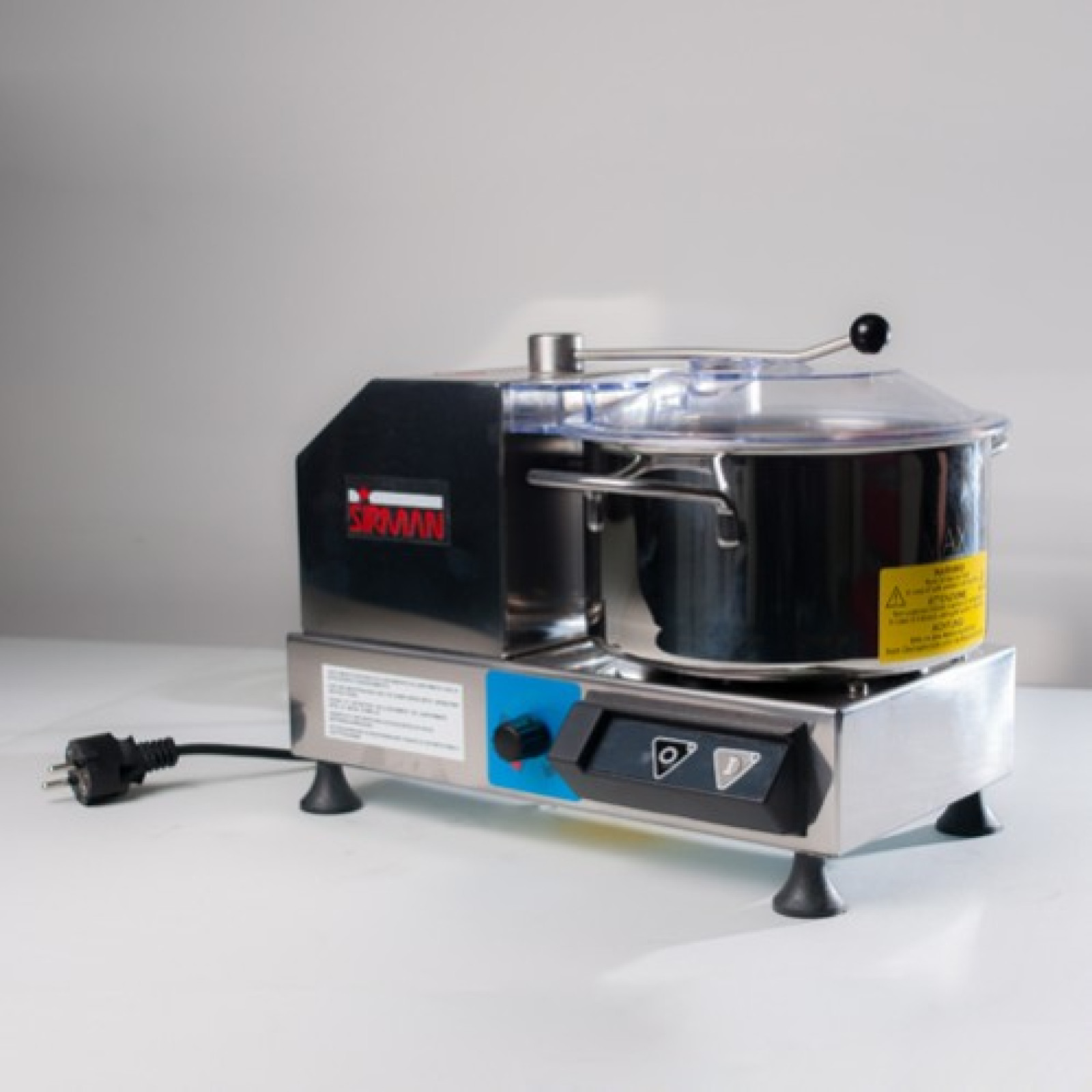 Опис Настільний куттер SIRMAN C-4 VV CE Куттер SIRMAN C-4 VV з регулятором швидкості дозволяє дробити (горіхи, сухарі, шоколад і навіть замішувати тісто як на пельмені), рубати м'ясо (велико рубаний, дрібно рубаний і кнельну масу), подрібнювати будь-які продукти (цибуля, курага, чорнослив, крабові палички, кальмари, варене м'ясо, сир, варені яйця та ін.). Настільний куттер C-4 VV - призначений для виготовлення різних фаршів, начинок, соусів, збитих вершків, для розмелювання, перемішування, подрібнення будь-яких продуктів, забезпечуючи високу якість. Призначення: ресторани, фабрики-кухні, супермаркети, їдальні, ковбасні цехи, кондитерські. -ємність з нержавіючої сталі об'ємом 3,3 л. - корпус з нержавіючої сталі - верхня кришка з прозорого харчового полікарбонату - пульт з натискними кнопками - запобіжні мікровимикачі на кришці і на підставі опори діжі - ємність діжі 3-5-8 літрів - оснащений 2-лопатевим ножем збивання, 2 або 4 лопатевий ніж для різання. Матеріал лез: нержавіюча, зносостійка сталь Дозволяється подрібнення при температурі продукту до t = 90 ° C. Куттер C-4 VV є дуже важливою приналежністю кухні. Різні соуси, рослинні олії, вершкове масло з приємним ароматом, майонез, супи, солодощі, пюре та холодні закуски легко готуються за допомогою даного апарату. За допомогою куттера можна швидко роздробити цибулю, часник, помідори та перець у будь-які розміри шматків. Застосовуються на підприємствах громадського харчування та в супермаркетах