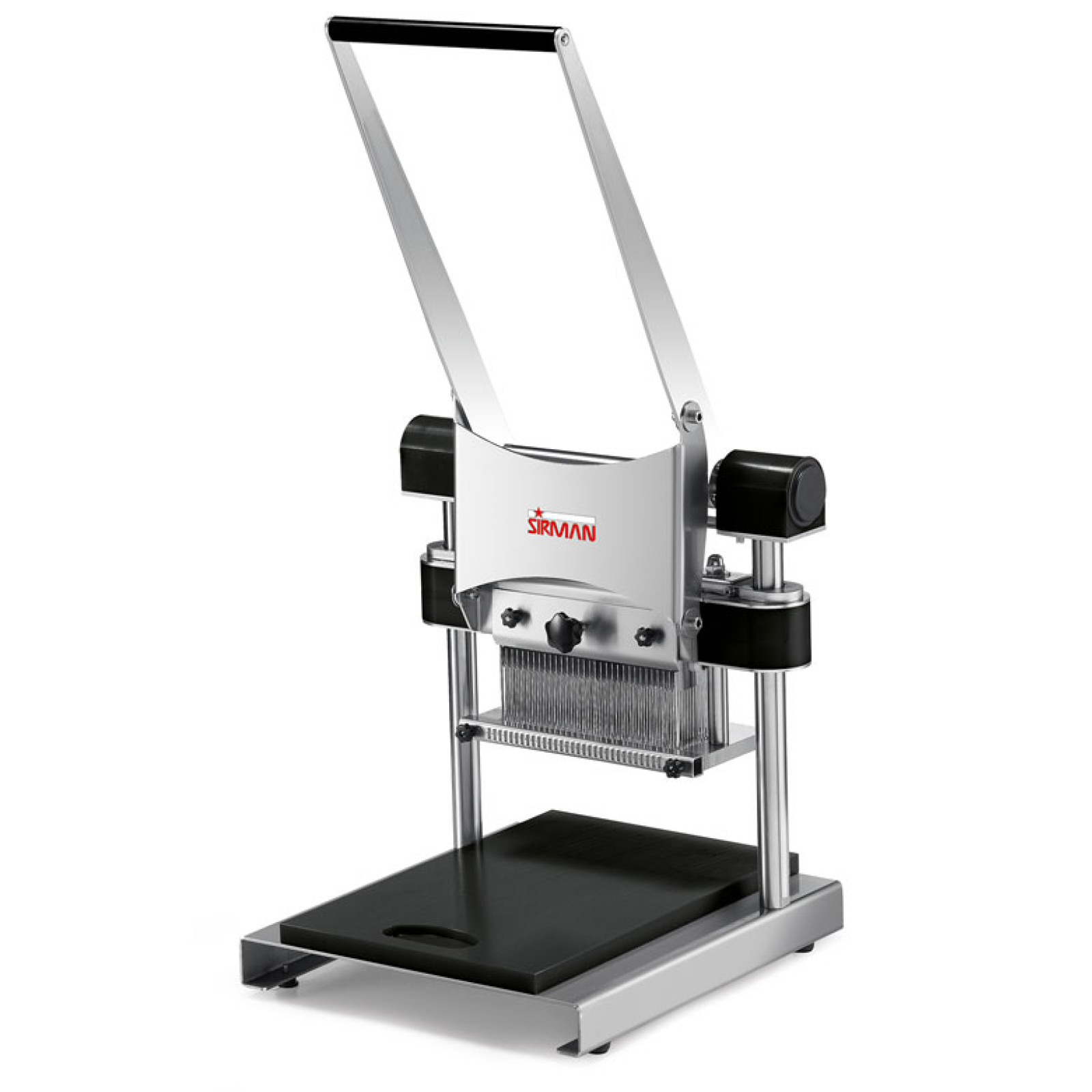 Sirman T-REX — це високоефективне механічне обладнання поршневого (вертикального) типу, спеціально розроблене для якісної обробки великих м'ясних блоків та безкісткових відрубів (Blockfleisch). Завдяки продуманій ергономіці та вертикальному принципу роботи, пристрій забезпечує рівномірне розпушування волокон, що значно покращує поглинання маринадів та скорочує час приготування продукту.