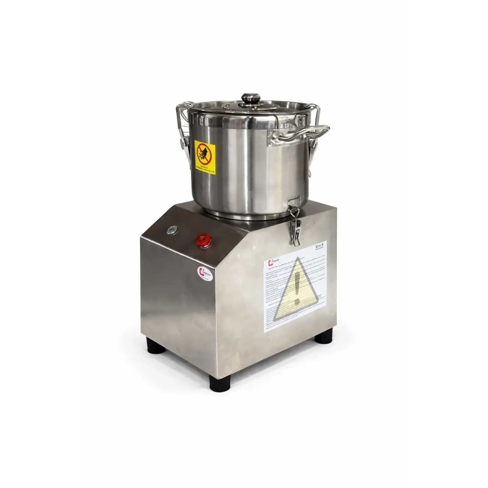 Корпус куттера виготовлений з нержавіючої сталі, що гарантує високу гігієнічність, міцність та легкість у догляді. Вертикальна конструкція забезпечує компактність і зручність використання у м’ясних цехах, ресторанах, фермерських господарствах та домашньому виробництві.