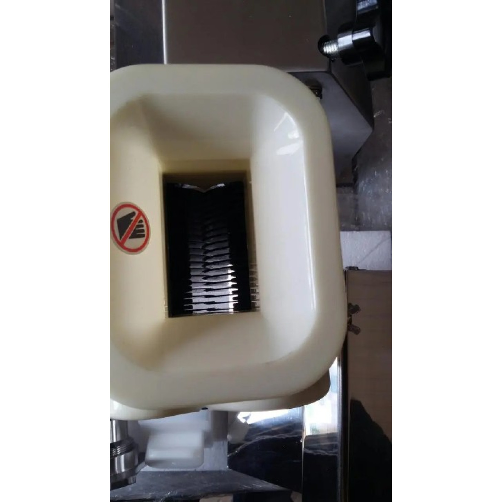М'ясо подається в робочу зону направляючим коробом.