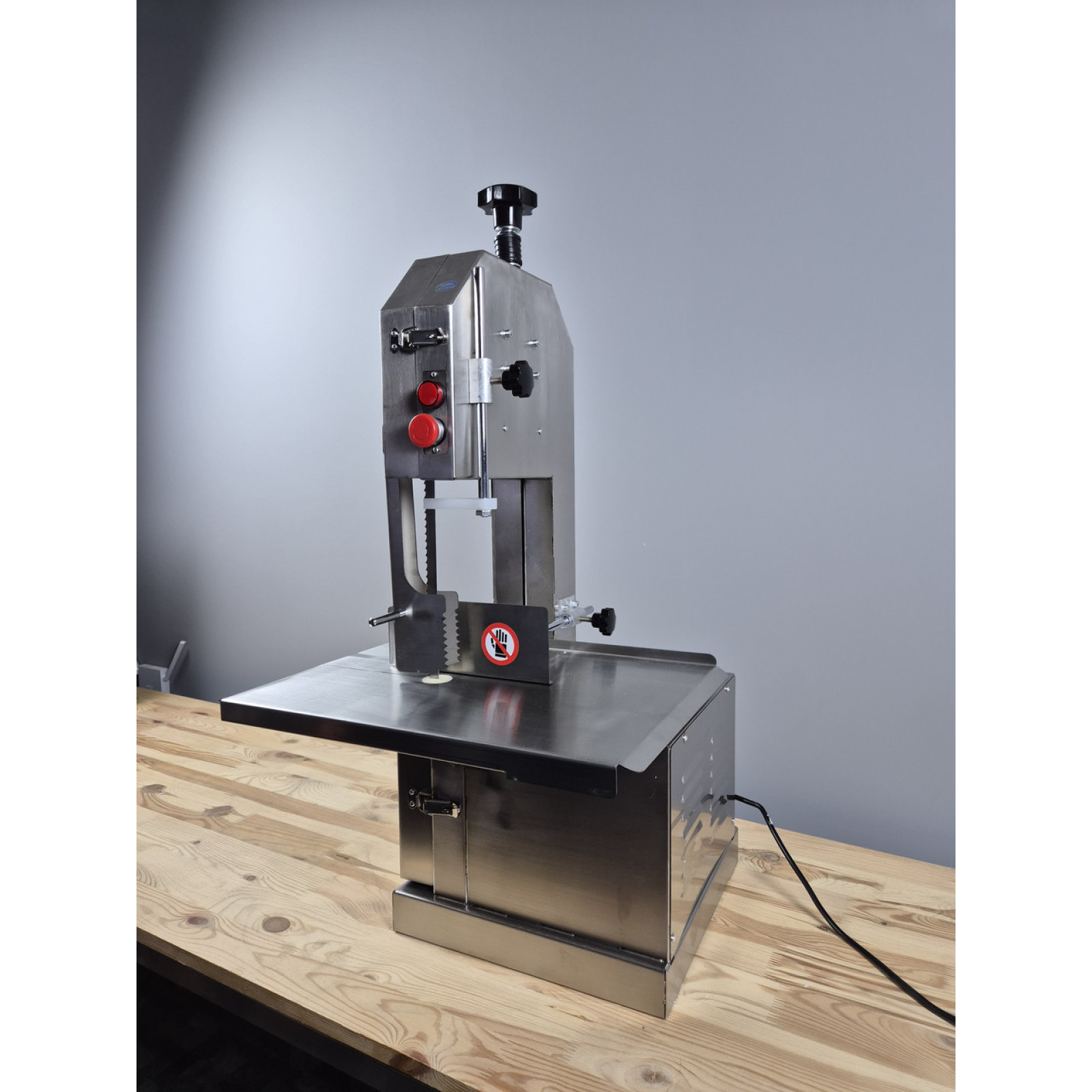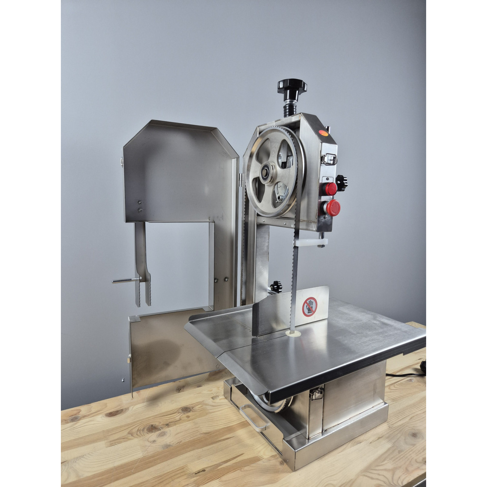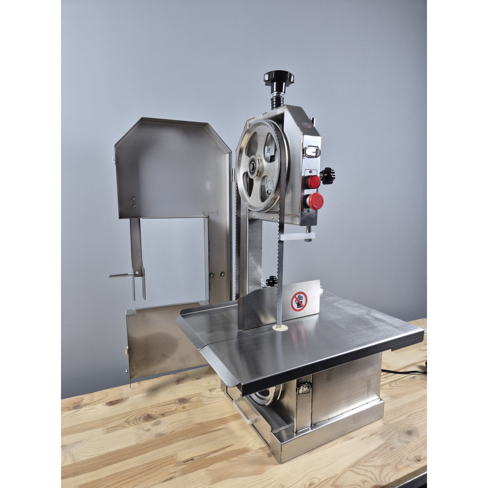 Пила для мяса на кости серии VEKTOR J250A идеально предназначена для любых мясных производств и любых объемов этих производств. Пила может обрабатывать как замороженное так и свежее мясо. Корпус и все детали пилы соприкасающиеся с продуктом выполнены из пищевой нержавеющей стали. В комплекте каждой модели имеется запасное полотно. Также у пилы предусмотрены толкатели и кожухи для безопасной работы персонала.