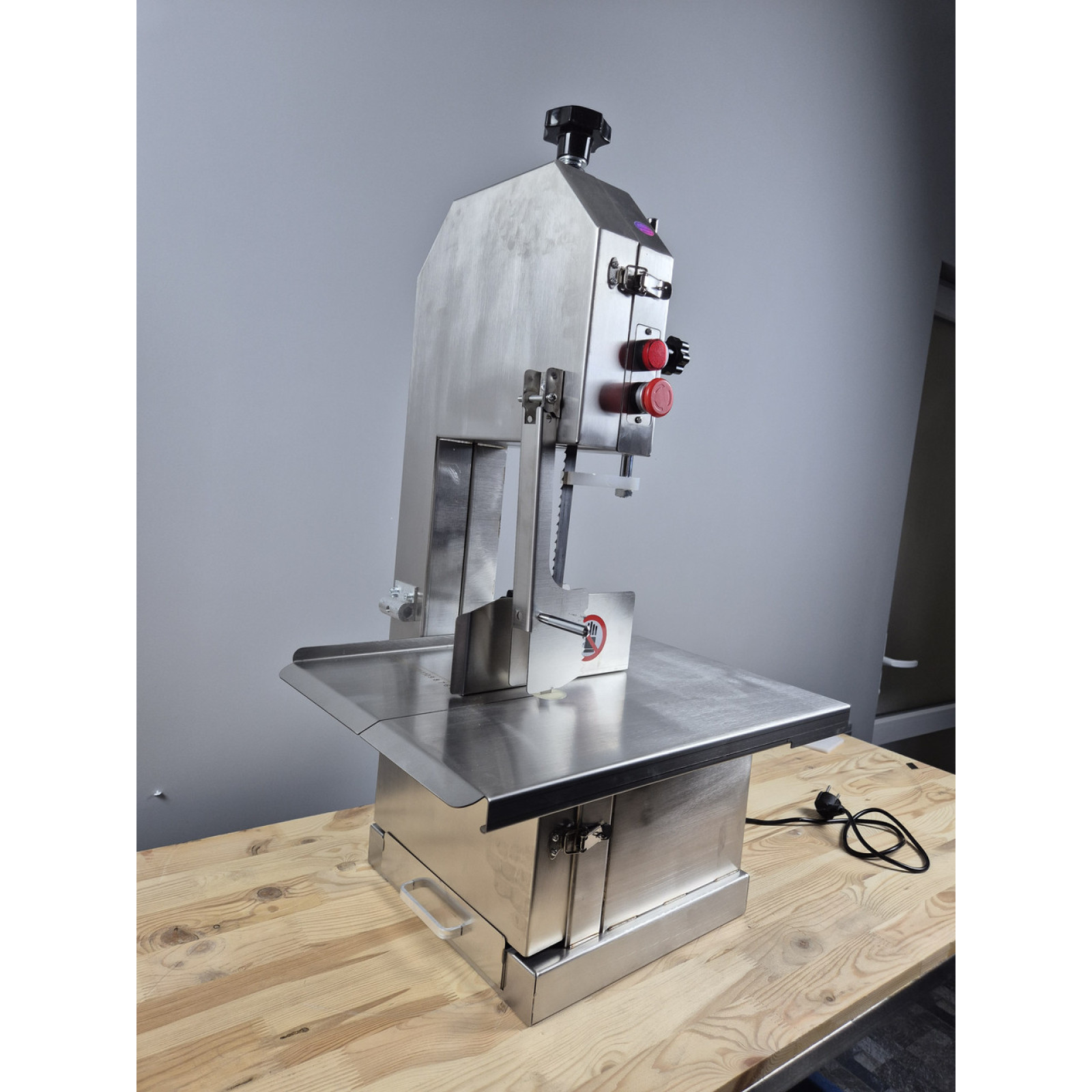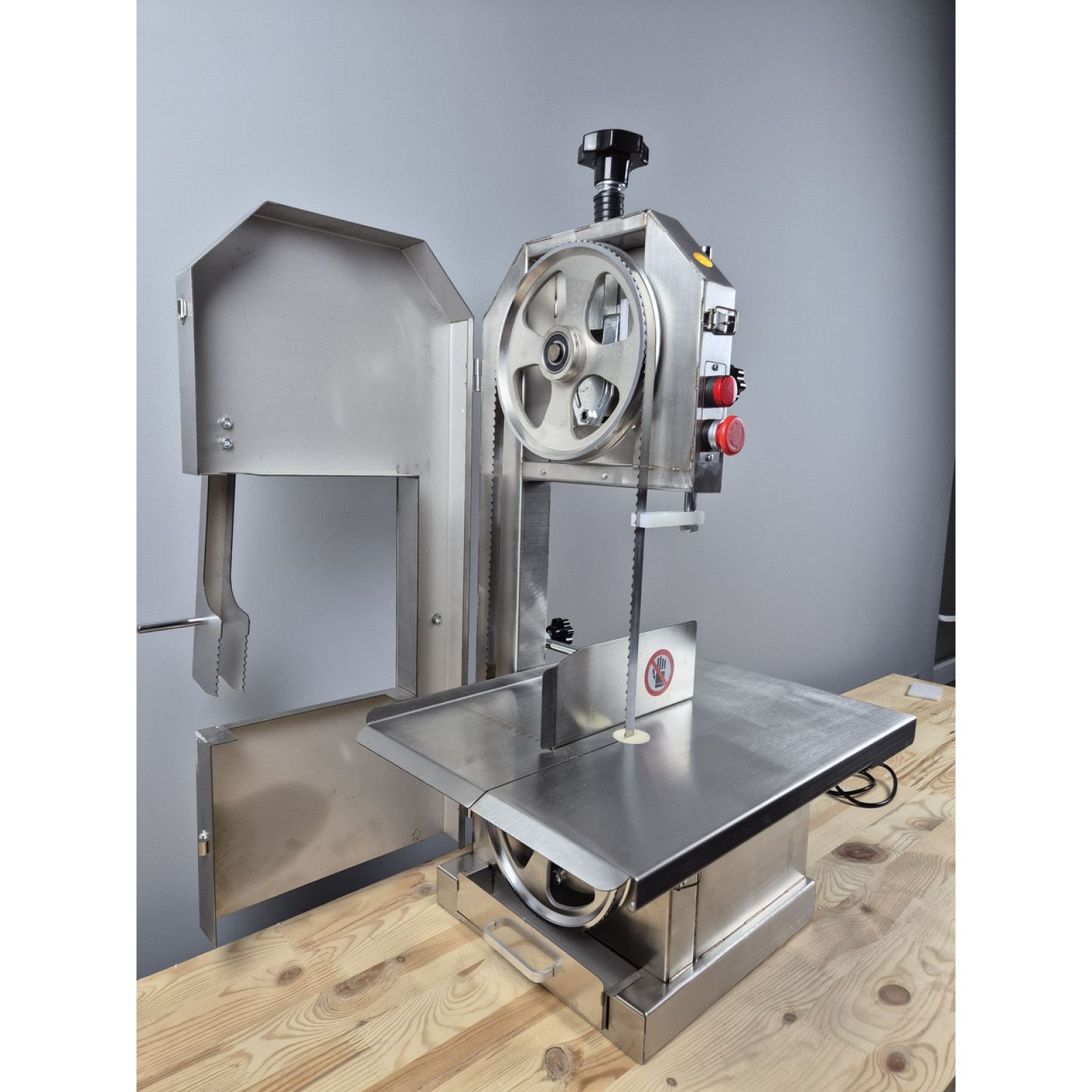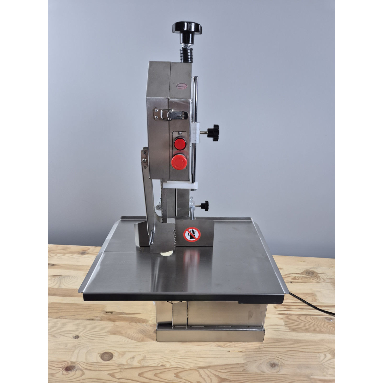 Пила для мяса на кости серии VEKTOR J250A идеально предназначена для любых мясных производств и любых объемов этих производств. Пила может обрабатывать как замороженное так и свежее мясо. Корпус и все детали пилы соприкасающиеся с продуктом выполнены из пищевой нержавеющей стали. В комплекте каждой модели имеется запасное полотно. Также у пилы предусмотрены толкатели и кожухи для безопасной работы персонала.