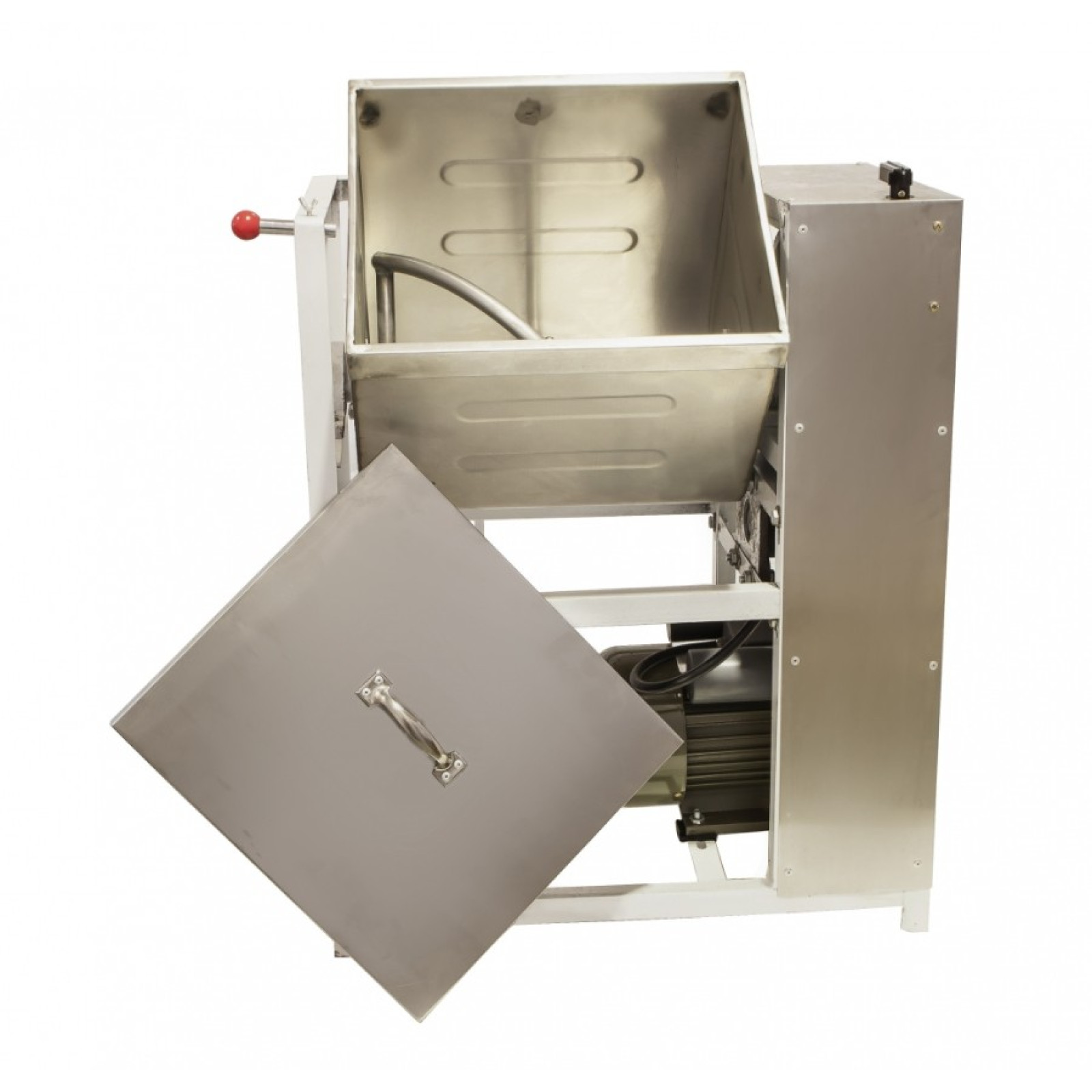 | ФАРШЕМІШАЛКА - ТІСТОМІС бункер, що перекидається, 12,5 кг швидкість обертання валу 35 об/хв Реверс 1 лопать для перемішування корпус - фарбована сталь ківш - нерж.сталь лопата - нерж.сталь потужність: 1,5 кВт/220В розм. 630x390x800 Вага: 49 кг |