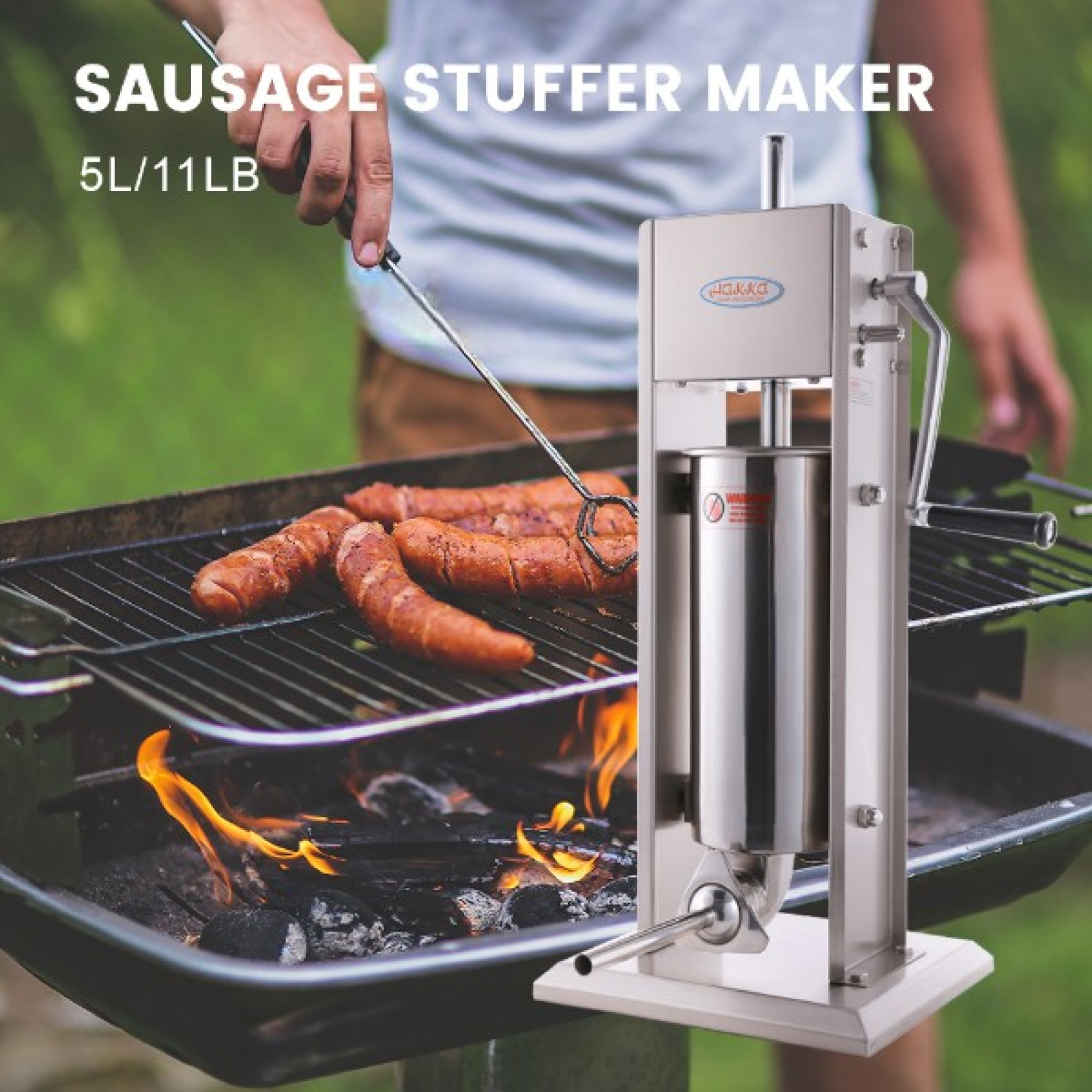 Вертикальна конструкція: Вертикальна конструкція наповнювача для ковбас Hakka заощаджує місце та забезпечує надійну роботу. Наповнювач можна легко розташувати вертикально або горизонтально, що спрощує його використання у різних кухонних приміщеннях.