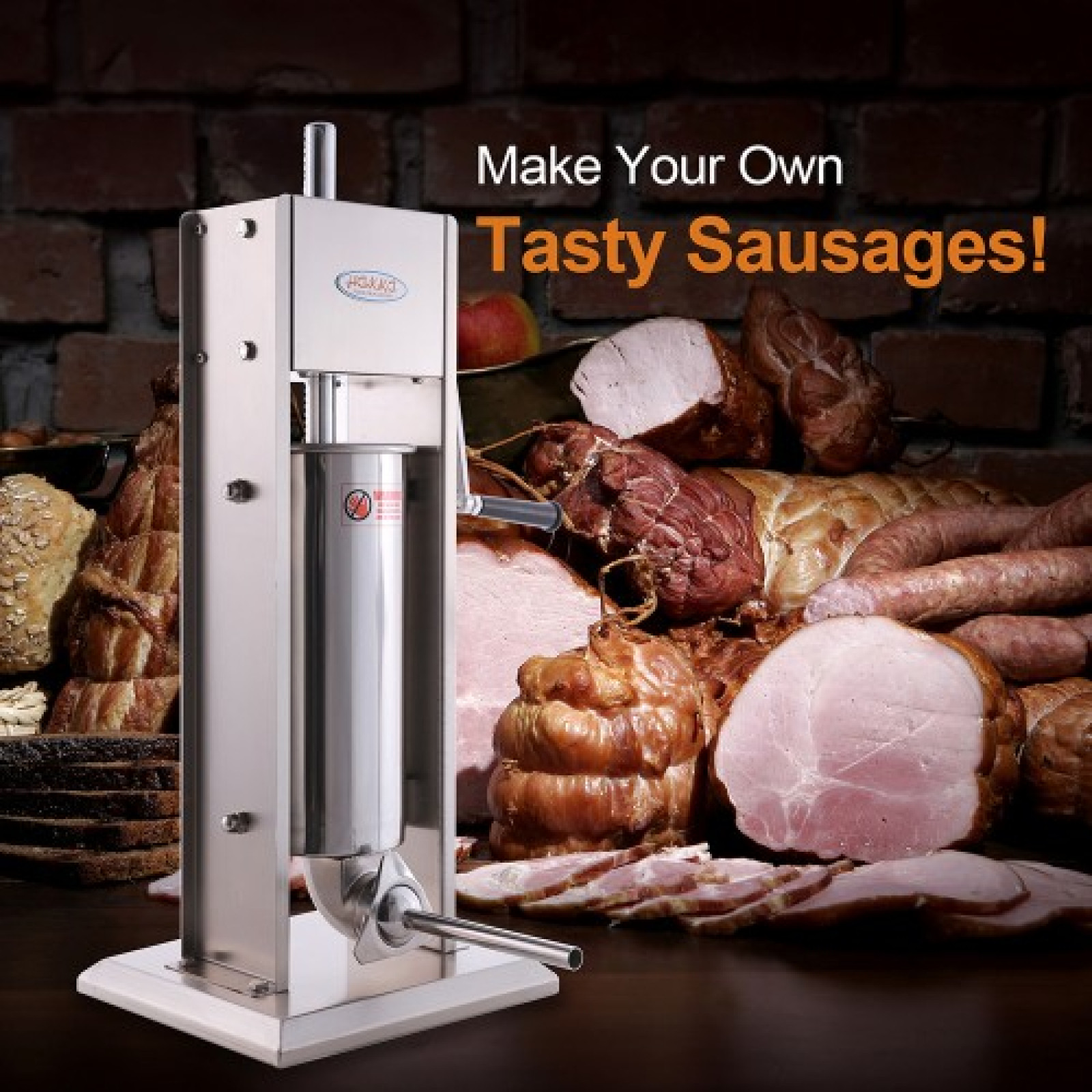 Вертикальна конструкція: Вертикальна конструкція наповнювача для ковбас Hakka заощаджує місце та забезпечує надійну роботу. Наповнювач можна легко розташувати вертикально або горизонтально, що спрощує його використання у різних кухонних приміщеннях.