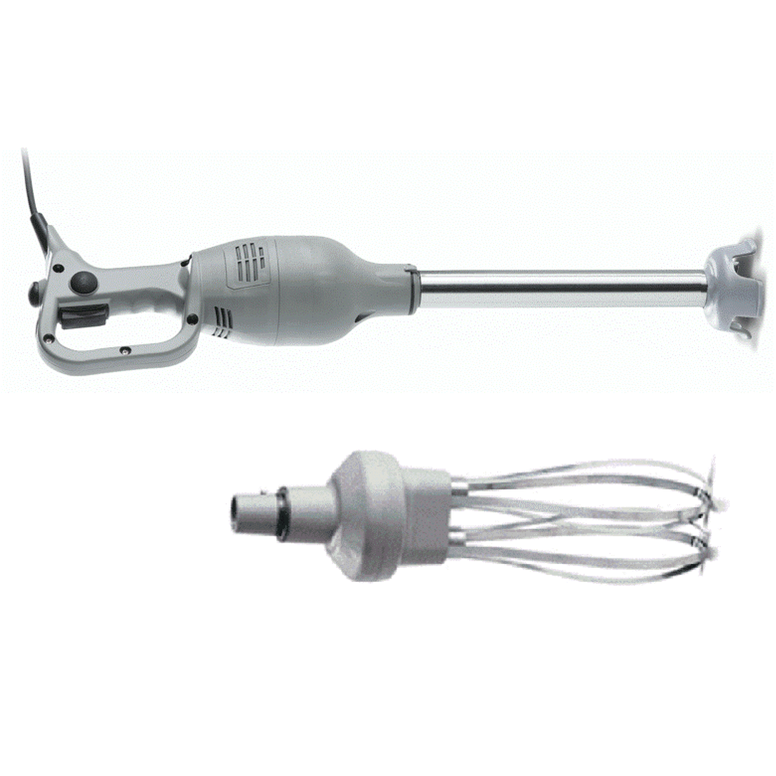 Опис Міксер ручний Sirman CICLONE 20 VV Міксер ручний Sirman CICLONE 20 VV призначений для подрібнення та перемішування продуктів до однорідної маси. Ручні міксери рекомендуються для ресторанів, їдалень, лікарень, шкіл, дитячих садків, пекарень та кондитерських, фабрик-кухонь та невеликих виробництв. Вони дозволяють приготувати: соуси, овочеві протерті супи, рибні супи, овочеві пюре, печінкові паштети, фруктові пюре, джеми, дитяче та дієтичне харчування, тісто для млинців, креми, безе, збиті вершки, майонез (рекомендуємо віночок), картопляне пюре маси, тісто для оладок (рекомендуємо віночок). - Ефективна система охолодження двигуна - Міцна, але легка несуча структура з АБС (алкілбензолсульфонату) зі скловолокном - Практична та ергономічна рукоятка - Доступні моделі з постійною та змінною швидкістю - Запобіжний пристрій проти випадкового включення - Кнопка блокування включеного двигуна - Доступні моделі - Апарат зі ступенем захисту IP x3 - Швидка система кріплення стрижня - Є в наявності стрижні довжиною 25 і 35 см - Ніж з трьома лезами з ножової сталі - У комплекті знімна насадка-блендер з нержавіючої сталі