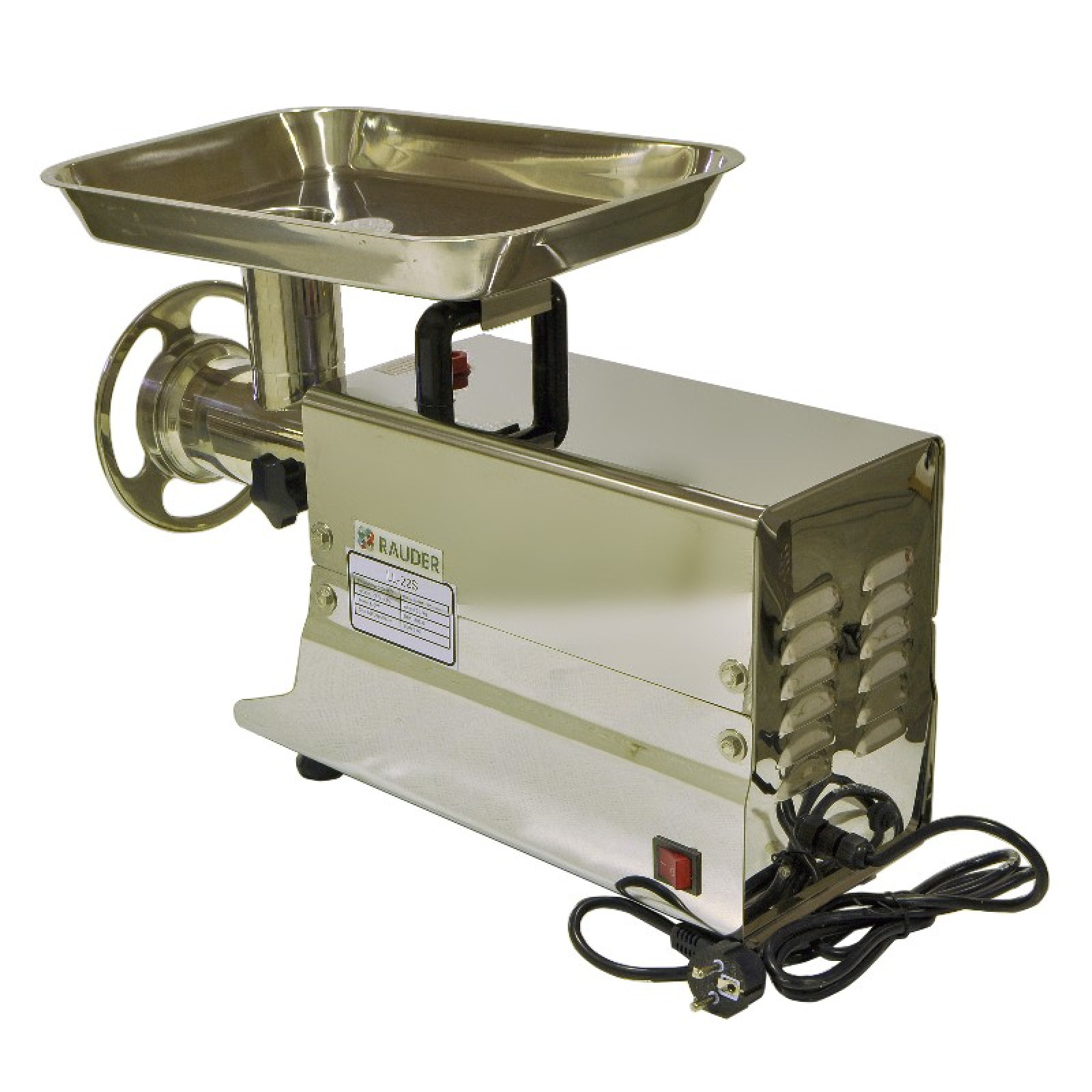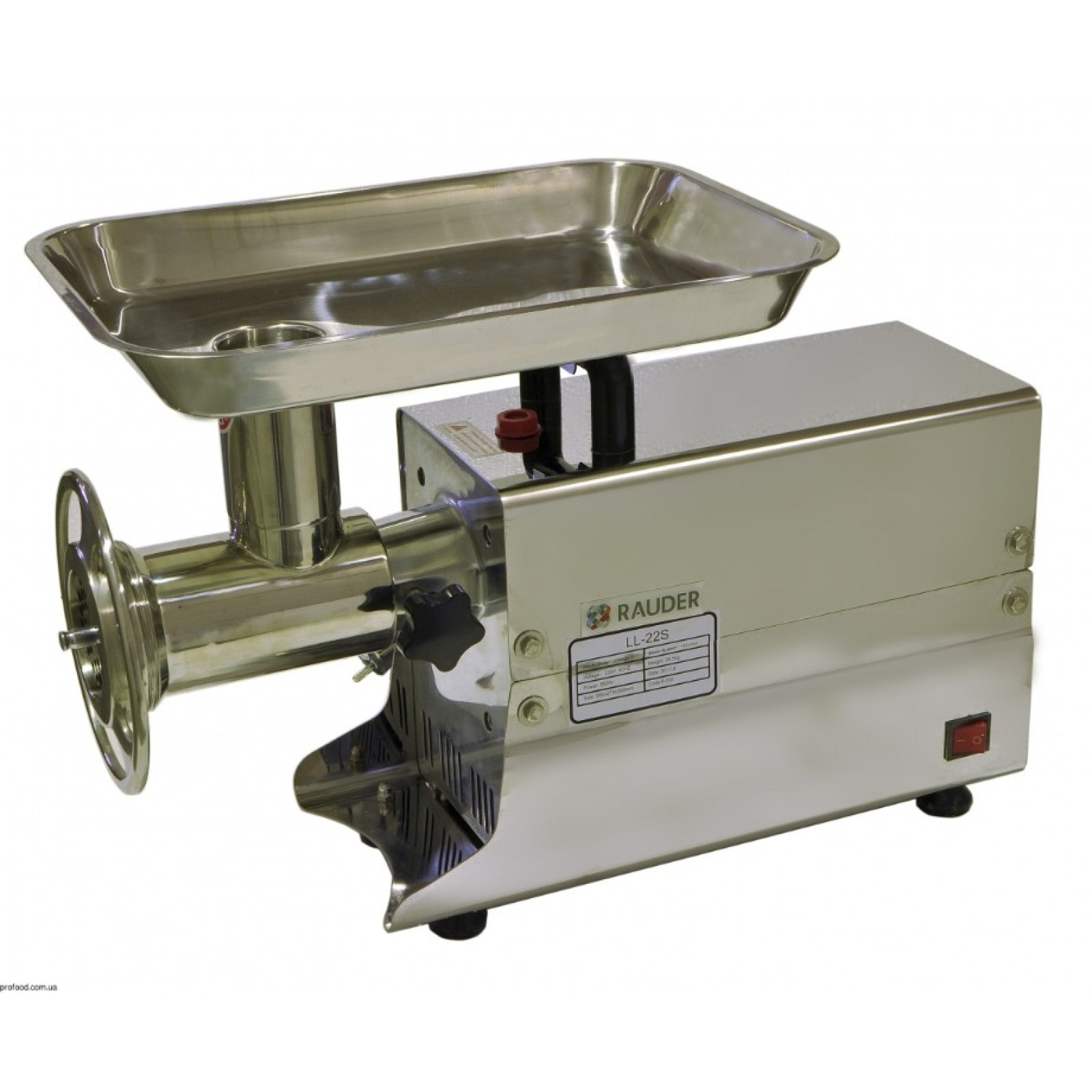 | М'ЯСОРУБКА ЕЛЕКТРИЧНА (Enterprise) продуктивність 200 кг/годину захист від перевантажень комплектується: 2 ножі, решітки 5,5мм, 7,5мм матеріал - нерж.сталь вентильований двигун реверс є потужність: 0,85 кВт/ 220В розм. 585x270x390 Вага: 25,5кг |