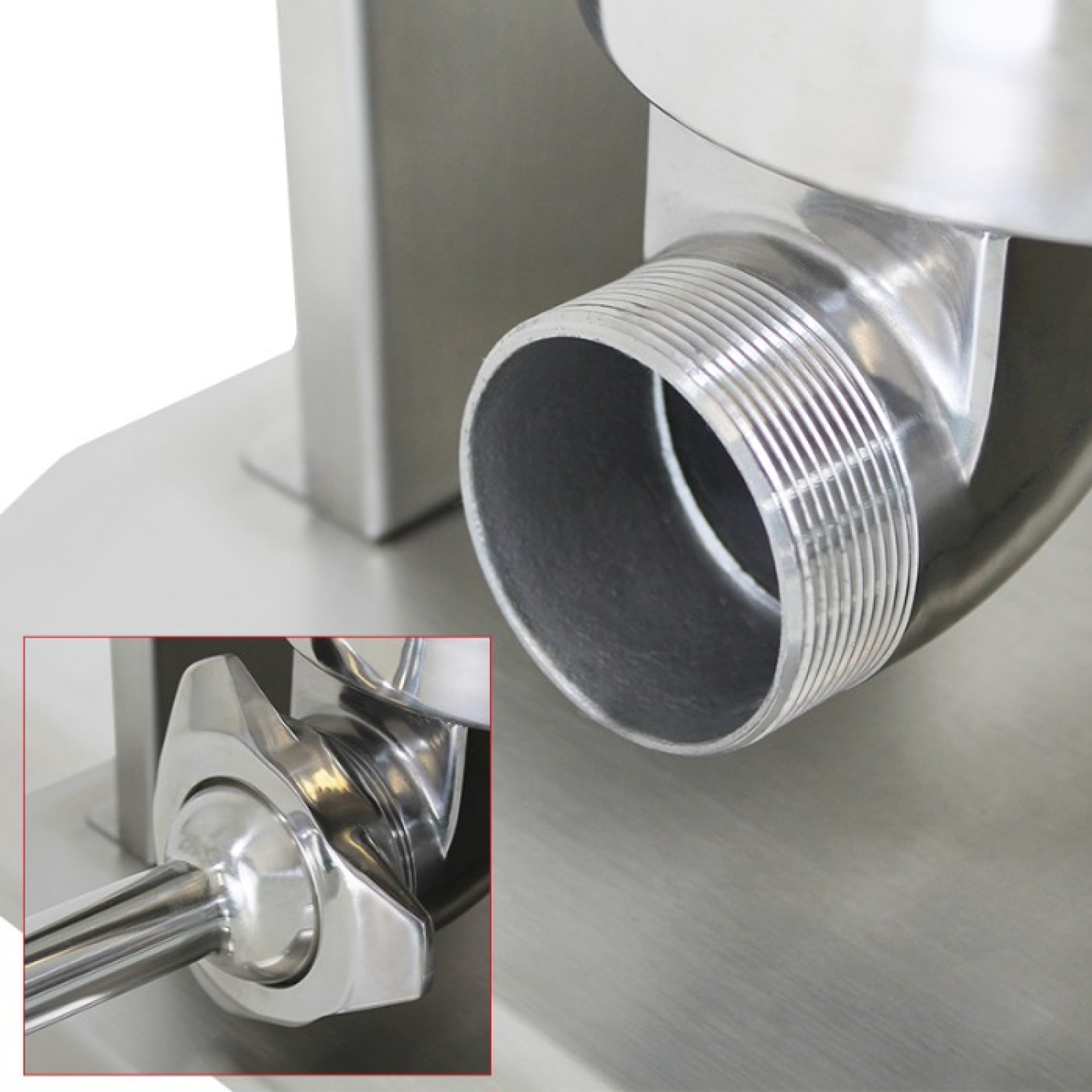 Ці наповнювачі для ковбас мають випускний клапан на верхній стороні плунжера, за допомогою якого можна випускати надлишки повітря з наповнювача. У притискній пластині плунжера є якісне силіконове ущільнення.