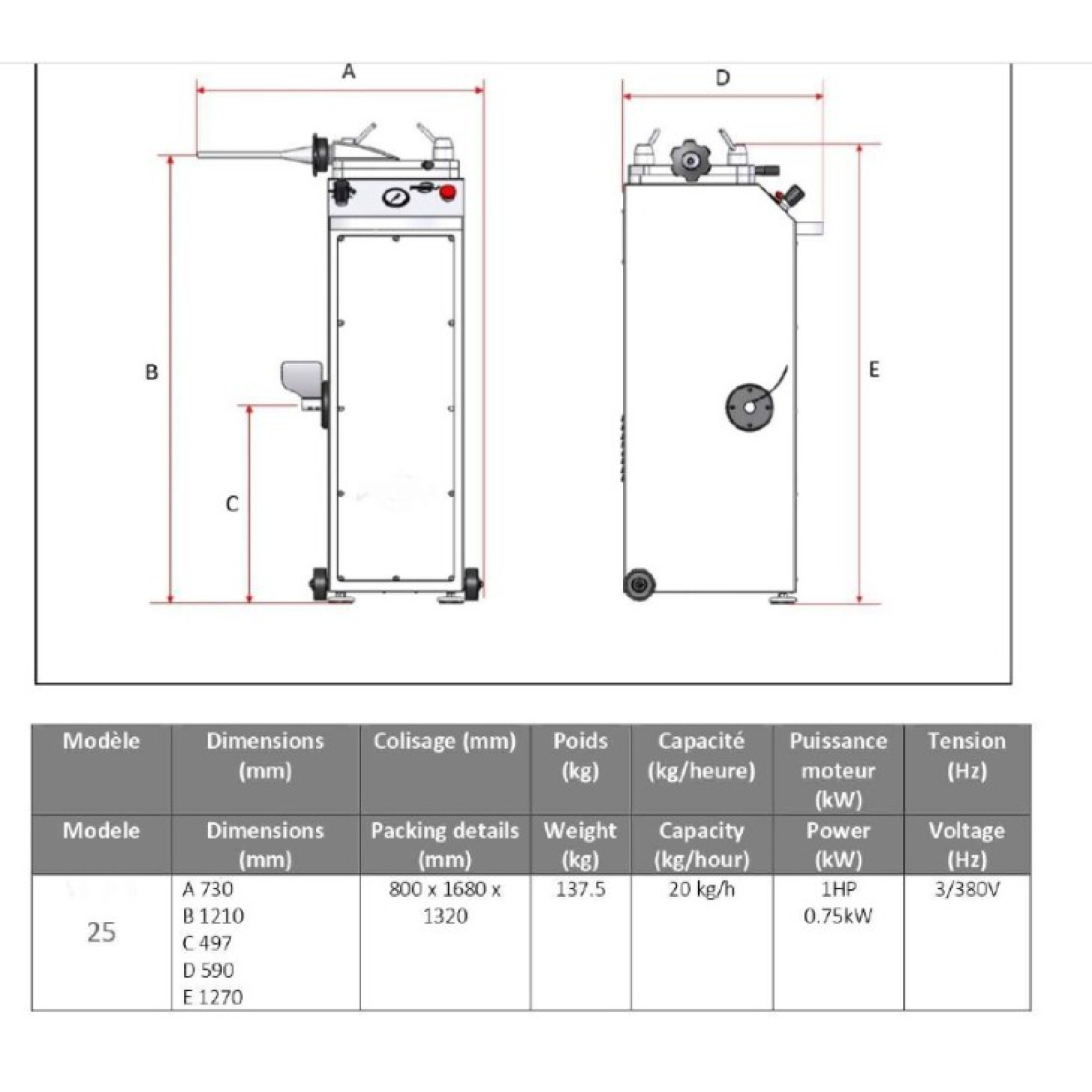 Продуктивність 20кг/год