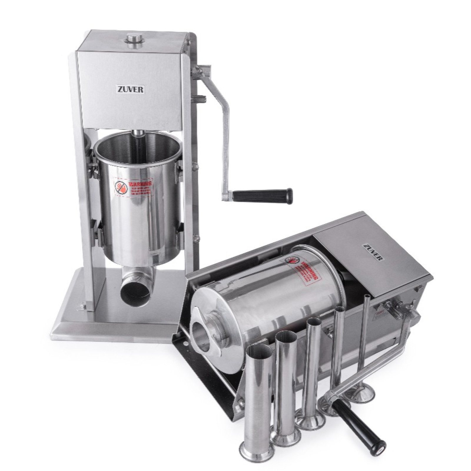 Завдяки цьому шприцу, ви зможете приготувати фірмові ковбасні вироби в ресторанах, кафе та спеціалізованих м’ясних магазинах. Доступна ціна, і європейська якість роблять ZUVER Stuffer Vertical 10 (SV–10) вигідним придбанням для вашого закладу. Купіть його зараз та розширте свій асортимент ковбасних виробів.