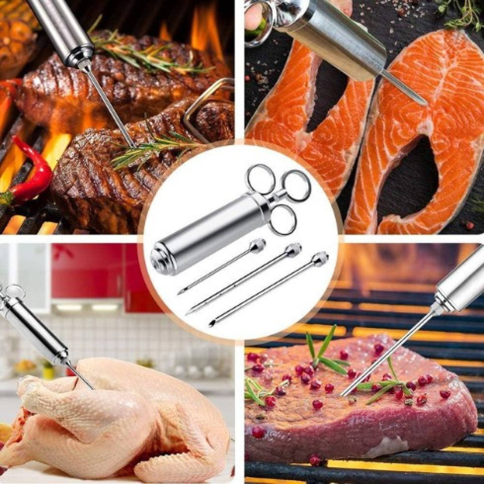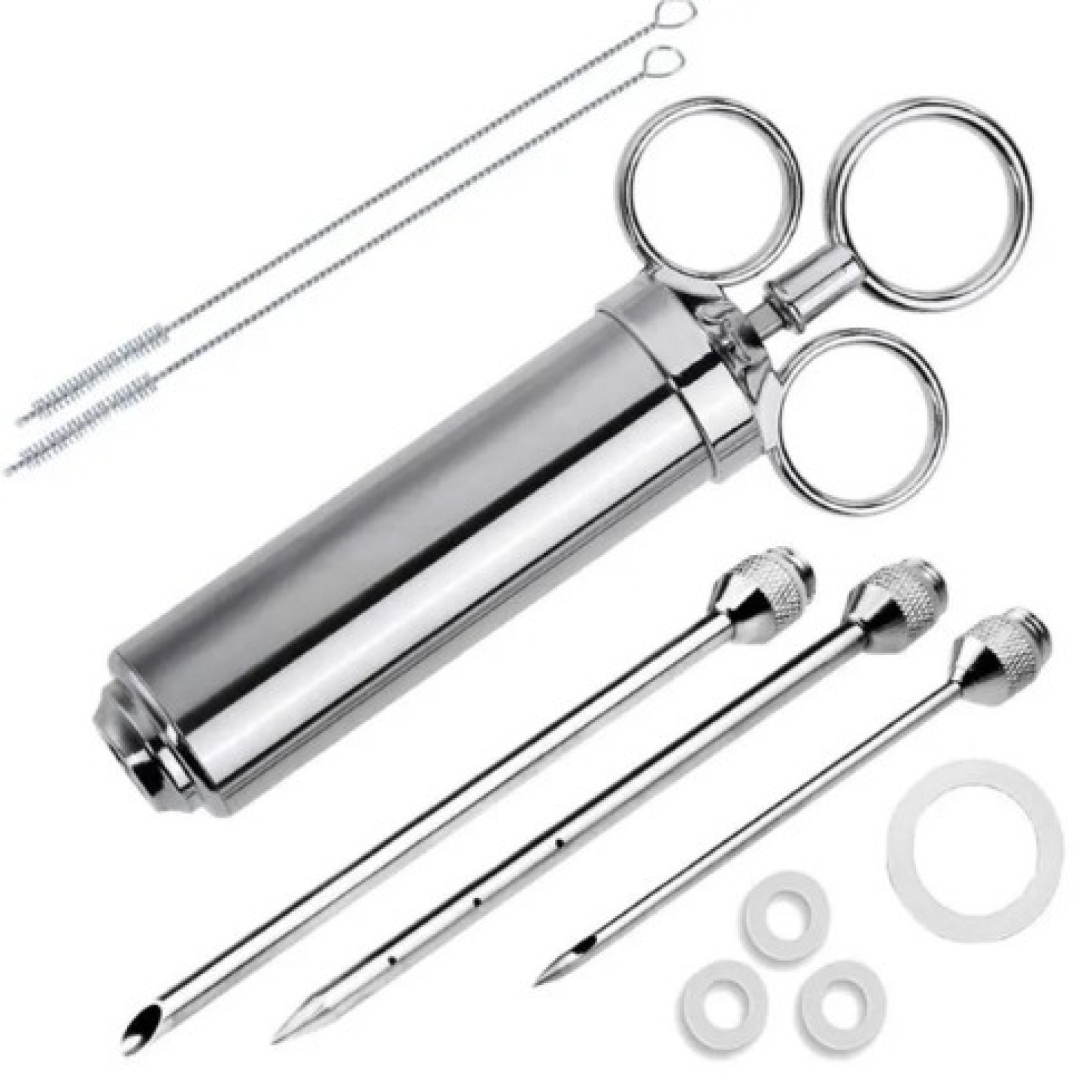 Кухонний шприц для обприскування підходить для всіх видів м'яса та птиці. Цей надійний інструмент виготовлений із високоякісної неіржавкої сталі, що забезпечує його міцність, довговічність і зручність у використанні. Шприц-ін'єктор дає змогу вам легко впроваджувати маринади та соуси безпосередньо всередину м'яса, забезпечуючи рівномірне просочування та інтенсивний смак у кожному шматочку.
