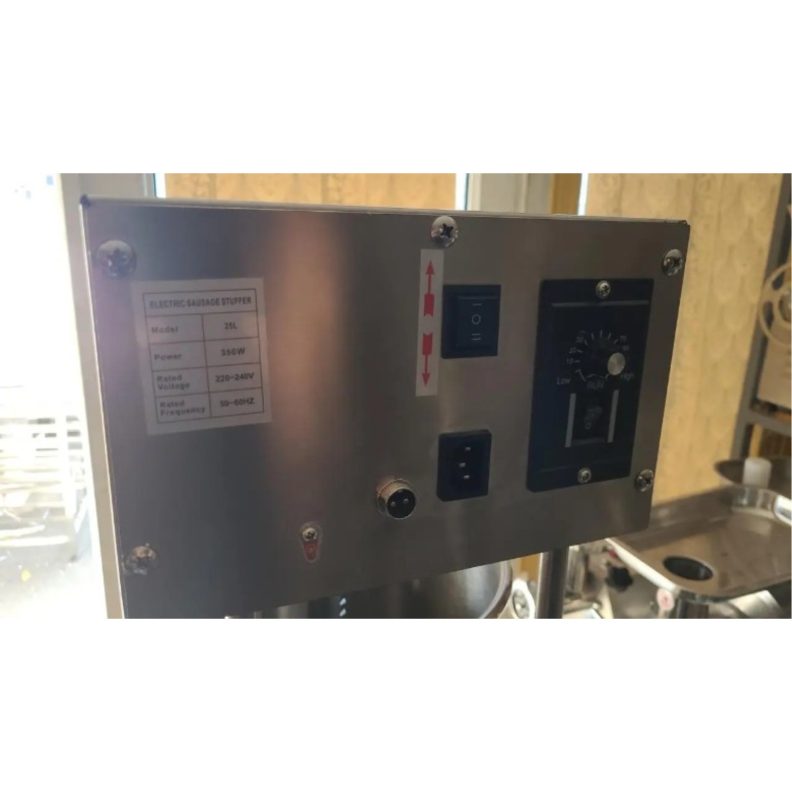 Призначені для наповнення ковбас, корпус та циліндр нержавіюча сталь, об'єм 25 л, поршень з клапаном для повітря, 4 нержавіючі насадки діаметром 16, 22, 32 та 38 мм, плавне регулювання швидкості набивання ковбас, педаль зупинки руху поршня.